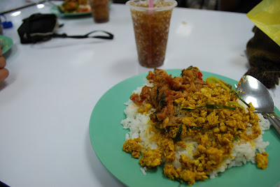 Some lunch we had at a small mall called Number 1 plaza. It was pretty spicy. The dish on the right is some kind of basil chicken and the left is some duck dish.