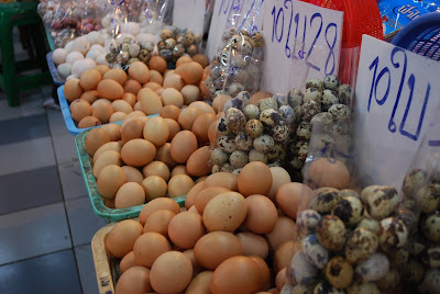 More paste. Rice. Eggs. You're right, they aren't in the refrigerator, that's more of an American thing - we do a lot of funny things with food that don't make a lot of sense and are over cautious. Lastly, field crabs - sometimes they smash these up in a salad made from unripened papaya, called Som Tum.