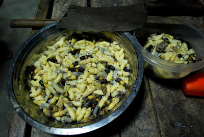 You will see on the coming video how we got these larvae, we (the Thais), burnt down a huge nest of nasty, giant bees on the house!