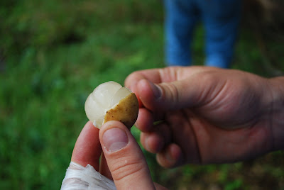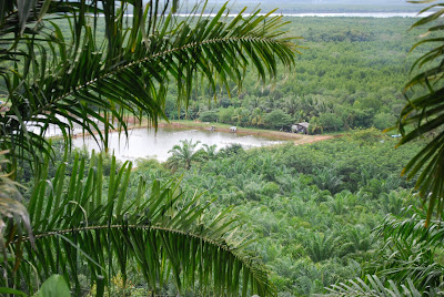 Here is a picture of us on the bus, ready for our 11 hour ride down south. The last three pictures are from a hike we took with a great view in Phang Nga. Some guys gave us some fruit. The lake picture is a typical setup for shrimp farming.