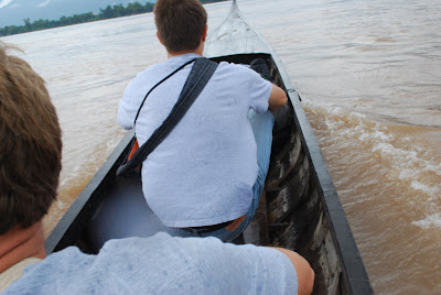 To get to a city called Champasak we had to cross the Mekong on one of these little boats. As you can see, the boat's edge is very close to the water, making you feel like you could fall in at any moment.