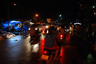 Waiting for the intense storm to stop so we could go outside. light encased by some wicker ball. The street.